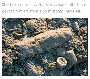 Eesti kivisterikkus Eesti settekivimid on maailmas haruldased ja neis leiduvad kivistised hästi säilinud, kuna nad on püsinud sadu miljoneid aastaid peaaegu muutumatuna, jäädes puutumata kurrutusest ja sügavale mattumisest. Eesti Kambriumi ladestu alumise osa savides ja liivakivides leidub haruldasi kivistisi: mikroskoopiline tigu Aldanella ja Platysolenites, trilobiit Schmidtiellus ning kummaline käsijalgne Mickwitzia. Samuti leidub seal arvukalt mereloomade roomamisjälgi ehk ihnofossiile. Kambriumi lademe ülemises osas esineb arvukalt fosfaatse kojaga käsijalgseid Ungula ja Schmidtites, kelle kuhjetest on moodustunud oobolusfosforiit.